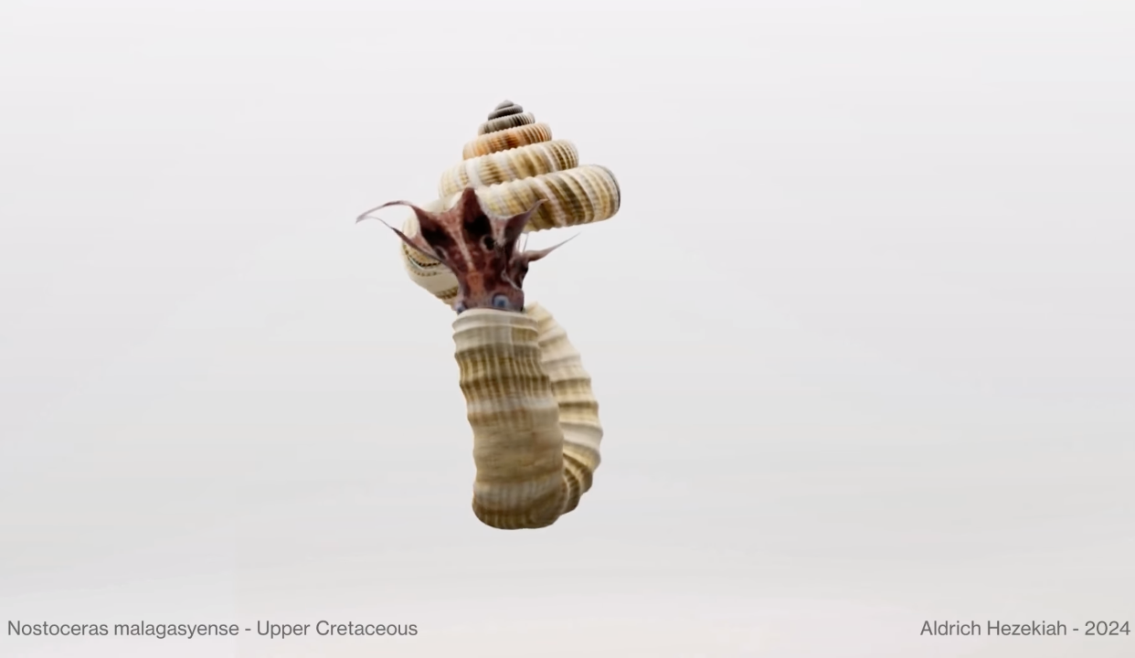爱好海洋生物和各类昆虫的印度尼西亚艺术家为自己取名「 Kiabugboy 」,视频中的生物叫作「菊石」,是一类已灭绝的头足纲软体动物,具有螺旋形的贝壳和众多触手。 Kiabugboy 通过 3 D 数字艺术的技术手段「复活」这些动物化石,使它们以一种更活泼、恒久的形式存在,消失的「自然奇迹」在虚拟的海洋中再次自由徜徉,演奏着生命的美丽。 From Kiabugboy