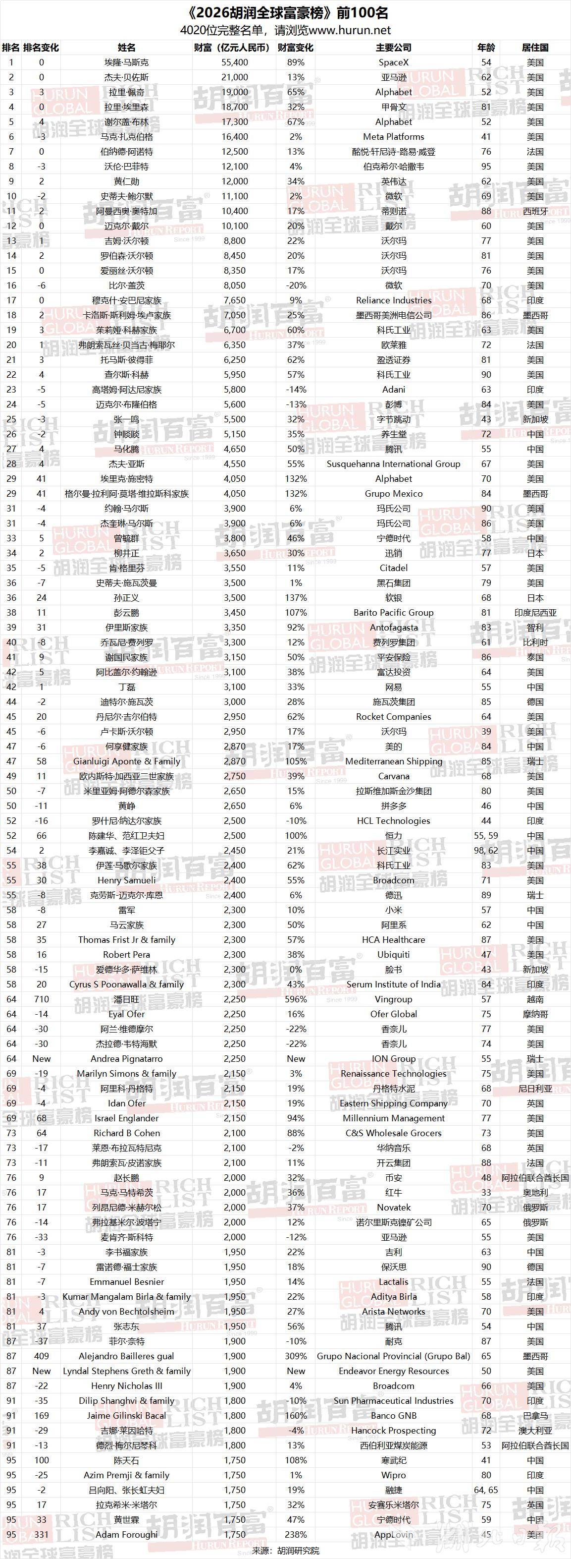 2026 胡润全球富豪榜发布:马斯克六年内五次成为全球首富