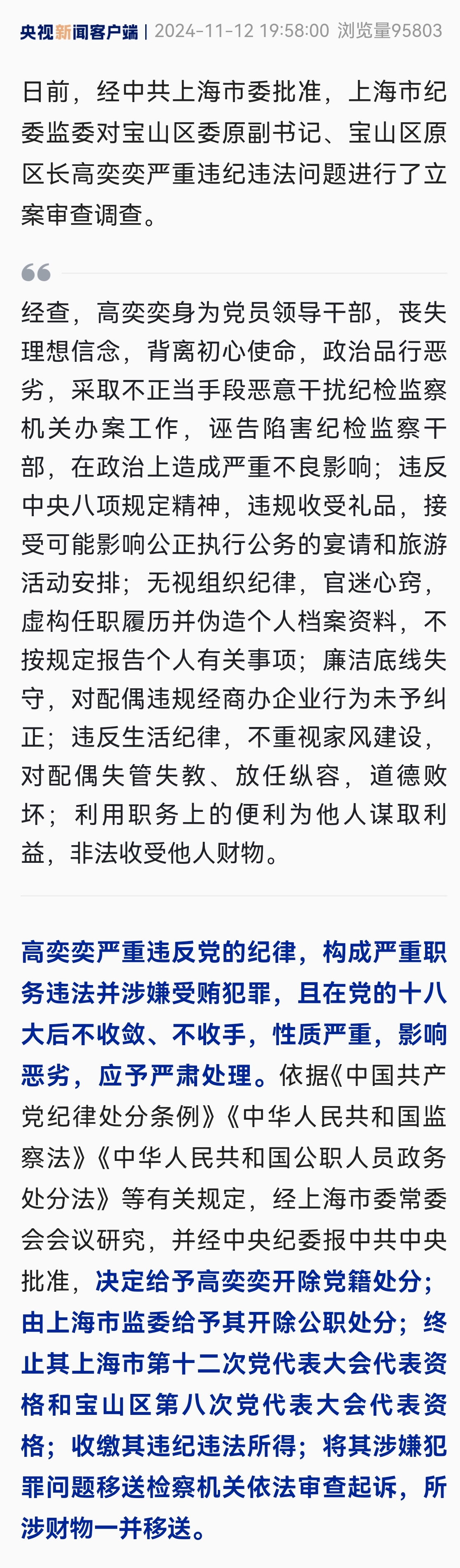 上海宝山区委原副书记高奕奕严重违纪违法被开除党籍和公职 Posted on 2024年11月13日 By admin 上海宝山区委原副书记高奕奕严重违纪违法被开除党籍和公职无评论 微信或QQ扫一扫 浏览量: 13 即时新闻