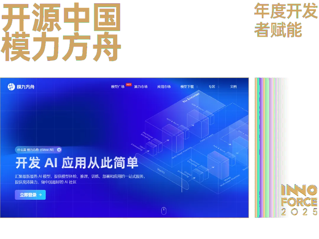 作为开源中国旗下的 AI 大模型一站式服务平台,模力方舟在 2025 年实现了跨越式发展。平台已汇聚超 18000 个全球开源模型和超 10000 个数据集,平台上线 150 个模型 API,已构建起国内领先的 AI 模型托管与应用生态。