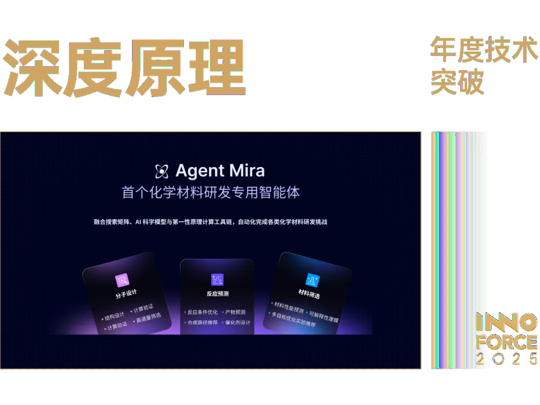 深度原理的技术创新,是真正将 AI 用于最基础的科学发现。他们通过 AI 决策链,将机器学习、量子化学计算和高通量实验整合成一个闭环。这套系统不仅能千倍速地加速研发,更重要的是,它能以前所未有的精度,在庞大的材料空间中定位最有潜力的候选者,并指引实验的方向。
