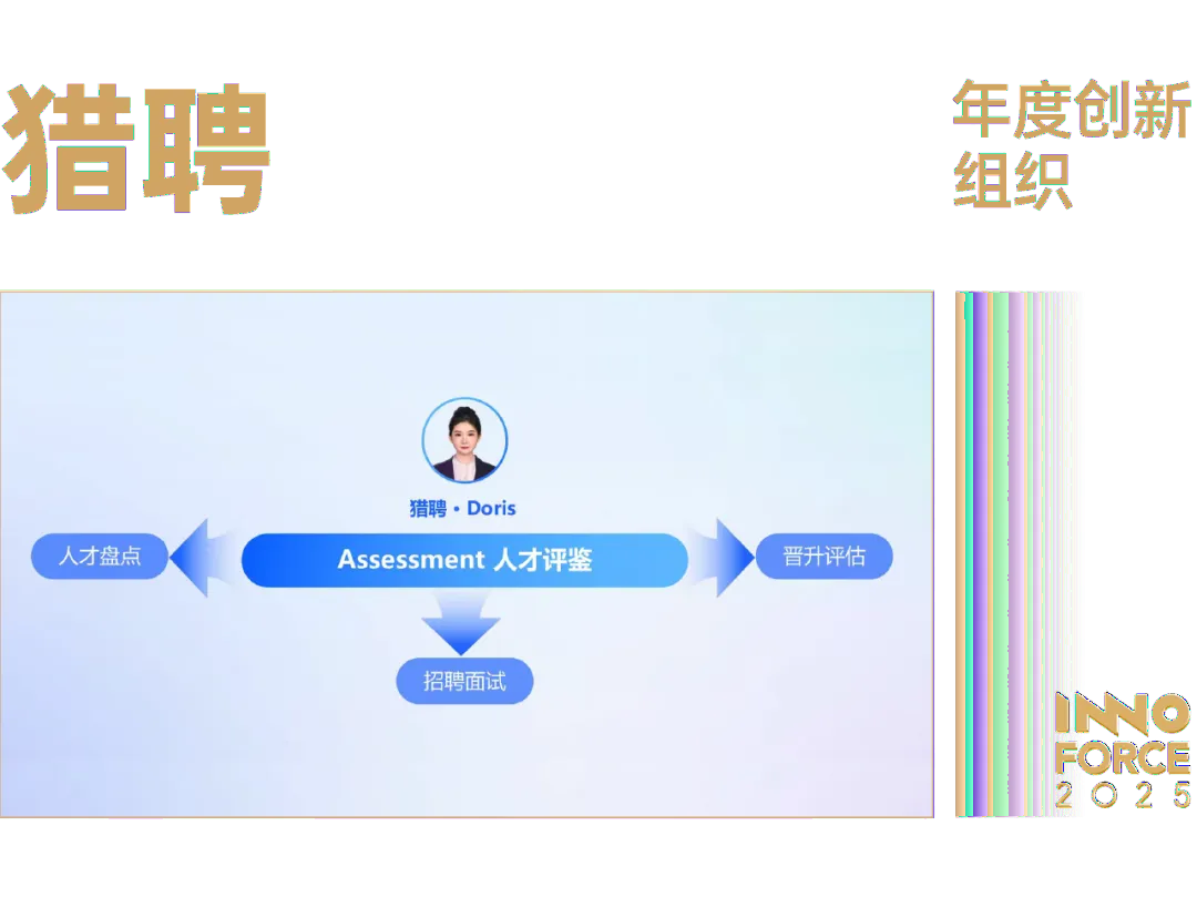 它的创新主要体现在两大层面:在技术应用上,它并非简单地将 AI 作为辅助工具,而是以 AI Agent 为核心,系统性地重构了从需求确认、人才寻访、意向沟通到深度评估的全链路招聘服务,推动招聘逻辑从「人工筛选+经验驱动」向「数据驱动+智能决策」的根本性转变。